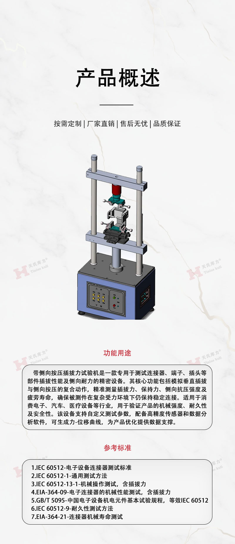 定制帶側向按壓插拔力試驗機,連接器插拔壽命