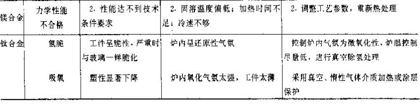 ▼表3 有色金屬熱處理常見力學性能缺陷及防止方法