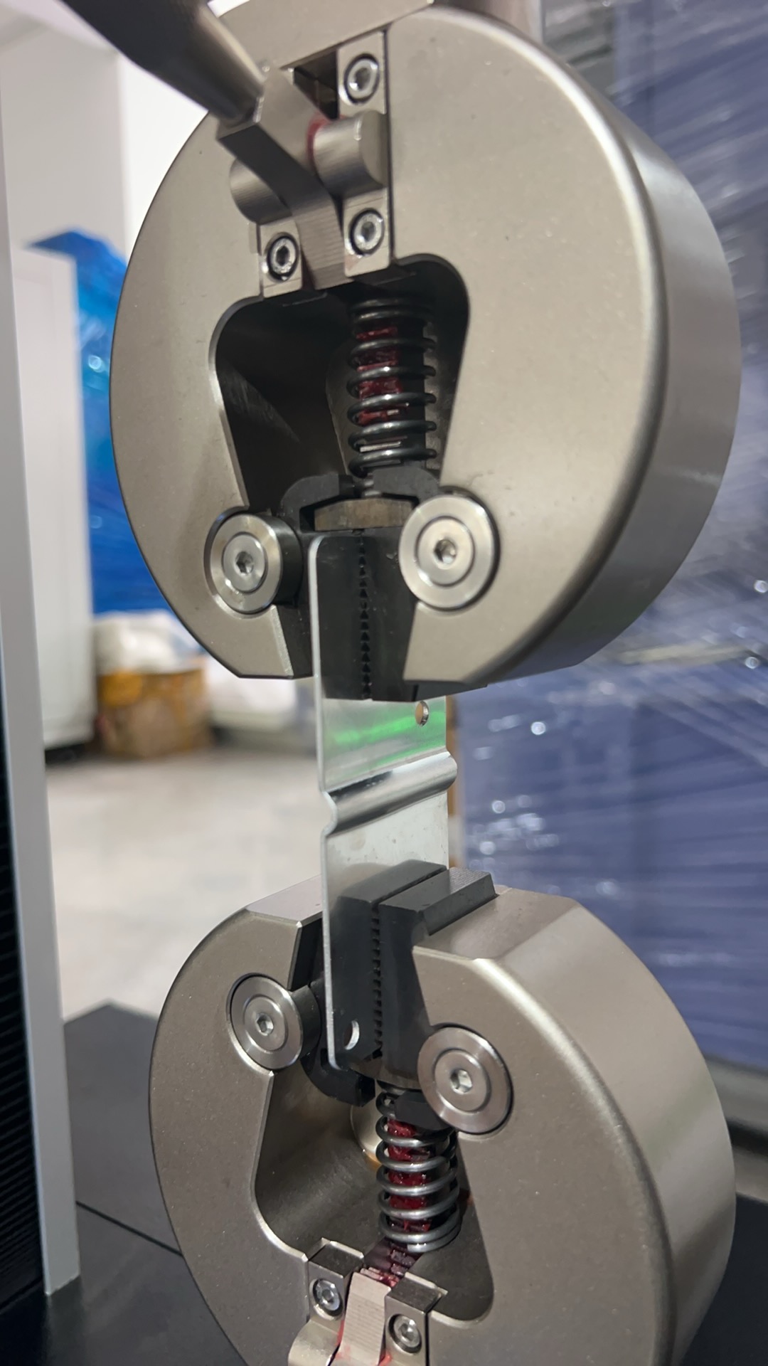 c輕拉試樣確認無松動,觀察試樣縱軸與拉力方向重合(偏差≤1°)。