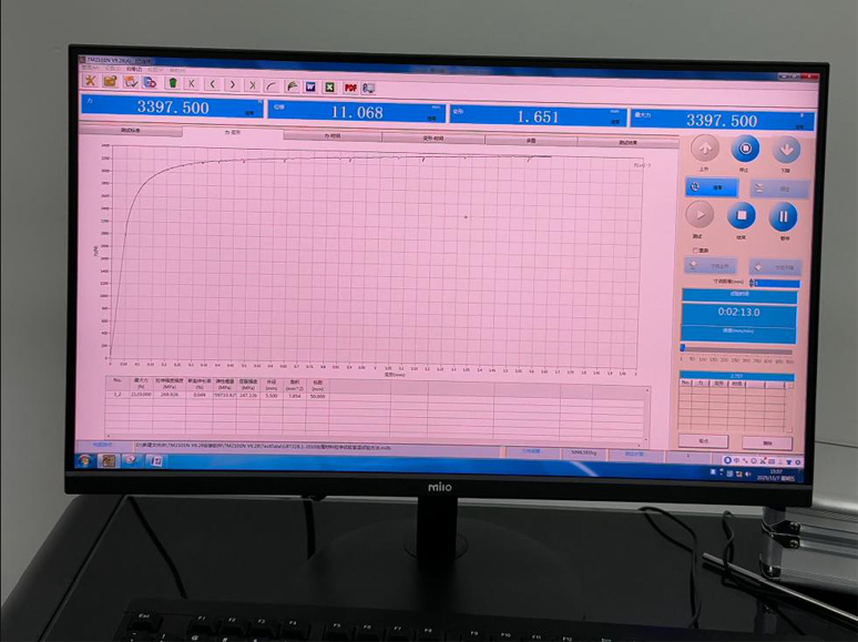 3、數據采集:在試樣平行段安裝高精度的引伸計,以捕捉微小的彈性變形和屈服點。試驗機以恒定速率施加拉伸載荷,自動記錄并繪制出完整的“載荷-位移”或“應力-應變”曲線。